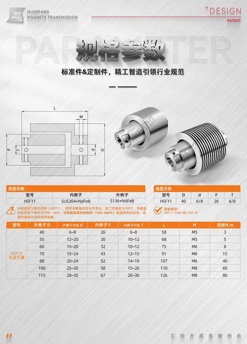 徑向磁力聯(lián)軸器(Radial Magnetic Coupling)內(nèi)轉(zhuǎn)與外轉(zhuǎn)子的中間安裝靜態(tài)法蘭隔離罩,無接觸傳動(dòng)。特別適用于中速、低速、高速輕型設(shè)備,適合正反轉(zhuǎn)傳動(dòng)。防止泄漏,避免發(fā)生安全事故,減少維護(hù)和停工更換成本。在核電、 航天航空、 生物醫(yī)療、海洋裝備、石油化工、實(shí)驗(yàn)室真空等設(shè)備都有著廣泛的應(yīng)用。